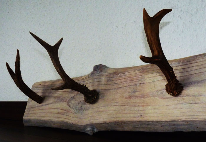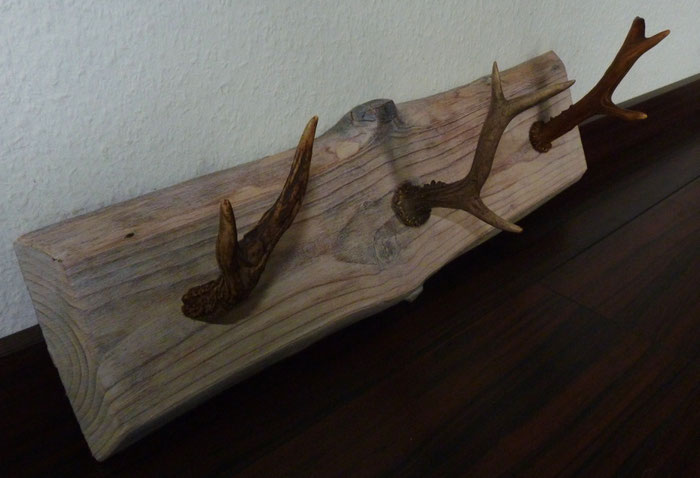 Trophäen, die mit Glitzersteinen und Stofffetzen beklebt sind gibt es hier ganz bestimmt nicht zu finden. Schlichtes Design, Naturmaterialien, verschiedene Rehgeweihe und fertig ist die Gaderobe. Ideal für Kostbarkeiten wie Schmuck, Kleidung und Schlüssel.